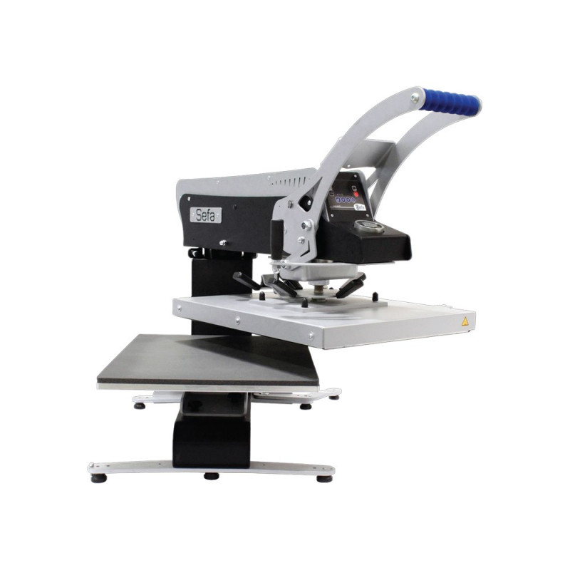 Presse à ouverture automatique et à dégagement latéral automatique.